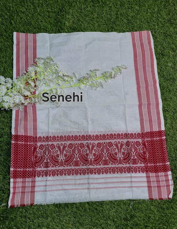 SENEHI gamusa, Assamese traditional handloom gamusa, handloom gamusa Assam, authentic Assamese gamusa, Assamese gamocha SENEHI, cotton handloom gamusa, traditional Assamese cloth, Bihu gamusa, red and white gamusa, Assamese cultural product, handmade gamusa Assam, Assamese heritage textile, Assam handloom product, eco friendly gamusa, gamusa for puja, gamusa for felicitation, Assamese festival cloth, traditional Assamese gift, SENEHI Assamese clothing