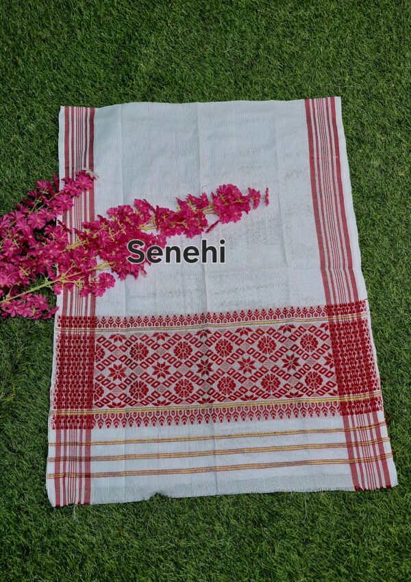 SENEHI gamusa, Assamese traditional handloom gamusa, handloom gamusa Assam, authentic Assamese gamusa, Assamese gamocha SENEHI, cotton handloom gamusa, traditional Assamese cloth, Bihu gamusa, red and white gamusa, Assamese cultural product, handmade gamusa Assam, Assamese heritage textile, Assam handloom product, eco friendly gamusa, gamusa for puja, gamusa for felicitation, Assamese festival cloth, traditional Assamese gift, SENEHI Assamese clothing